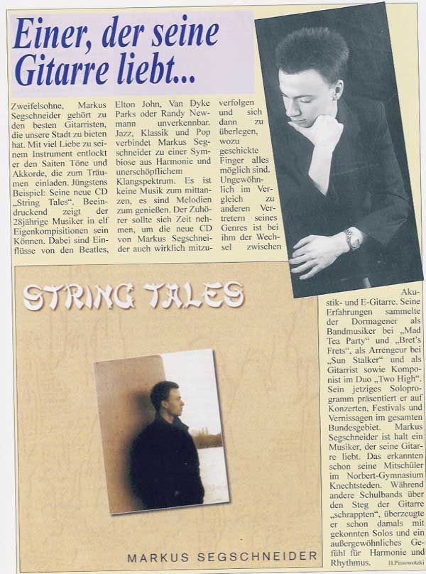 „… ist dem Kölner mit „String Tales“ schon jetzt eine bemerkenswerte CD gelungen, die in den meisten Momenten selbst einen internationalen Vergleich nicht zu scheuen braucht!“